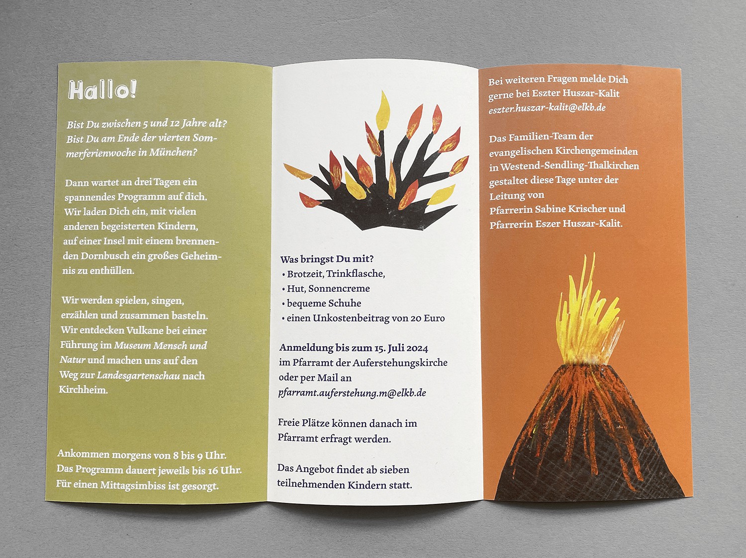 Flyer für Kinderbibeltage zum Thema "Wunder" und "Feuer".