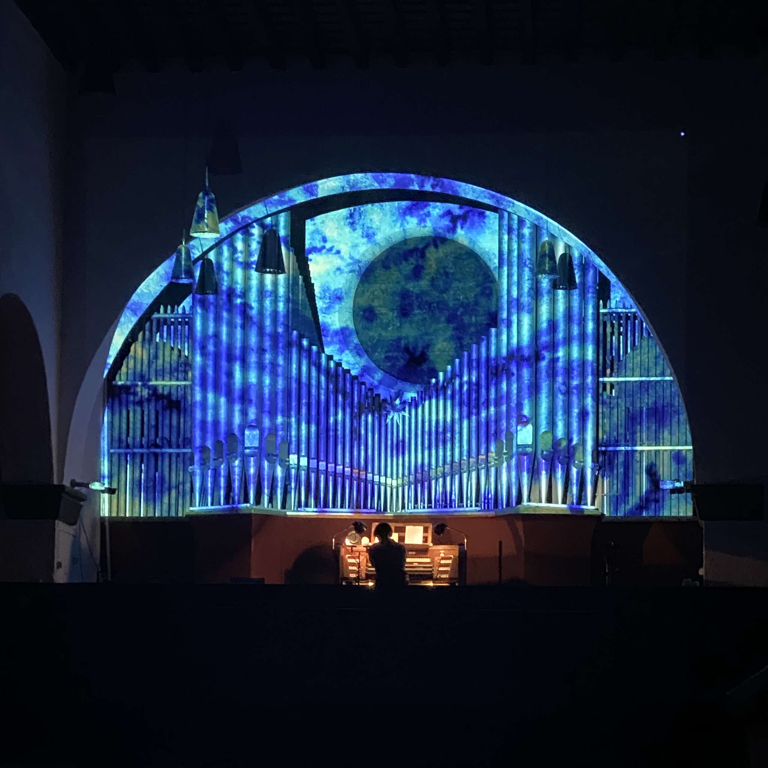 Im Rahmen der Konzertreihe "Westend Vibes", die ich auch grafisch betreue, fand am 14. November 2024 eine Solokonzert mit dem englischen Jazzpianisten Kit Downes an der Orgel statt. Hierfür erstellte ich in verschiedenen Techniken Visuals die während des Konzerts live mit der Musik interagierten.