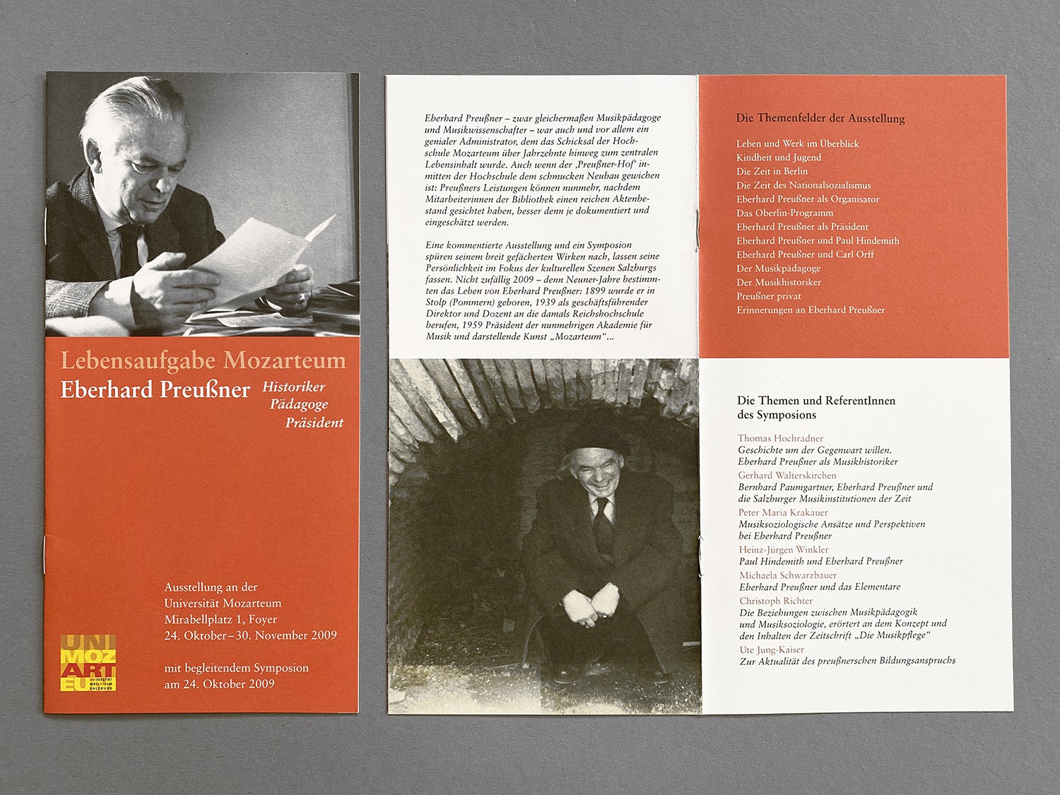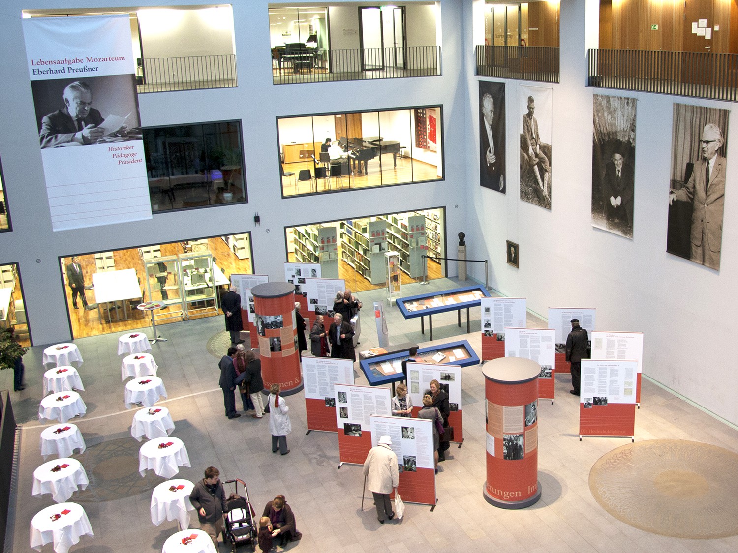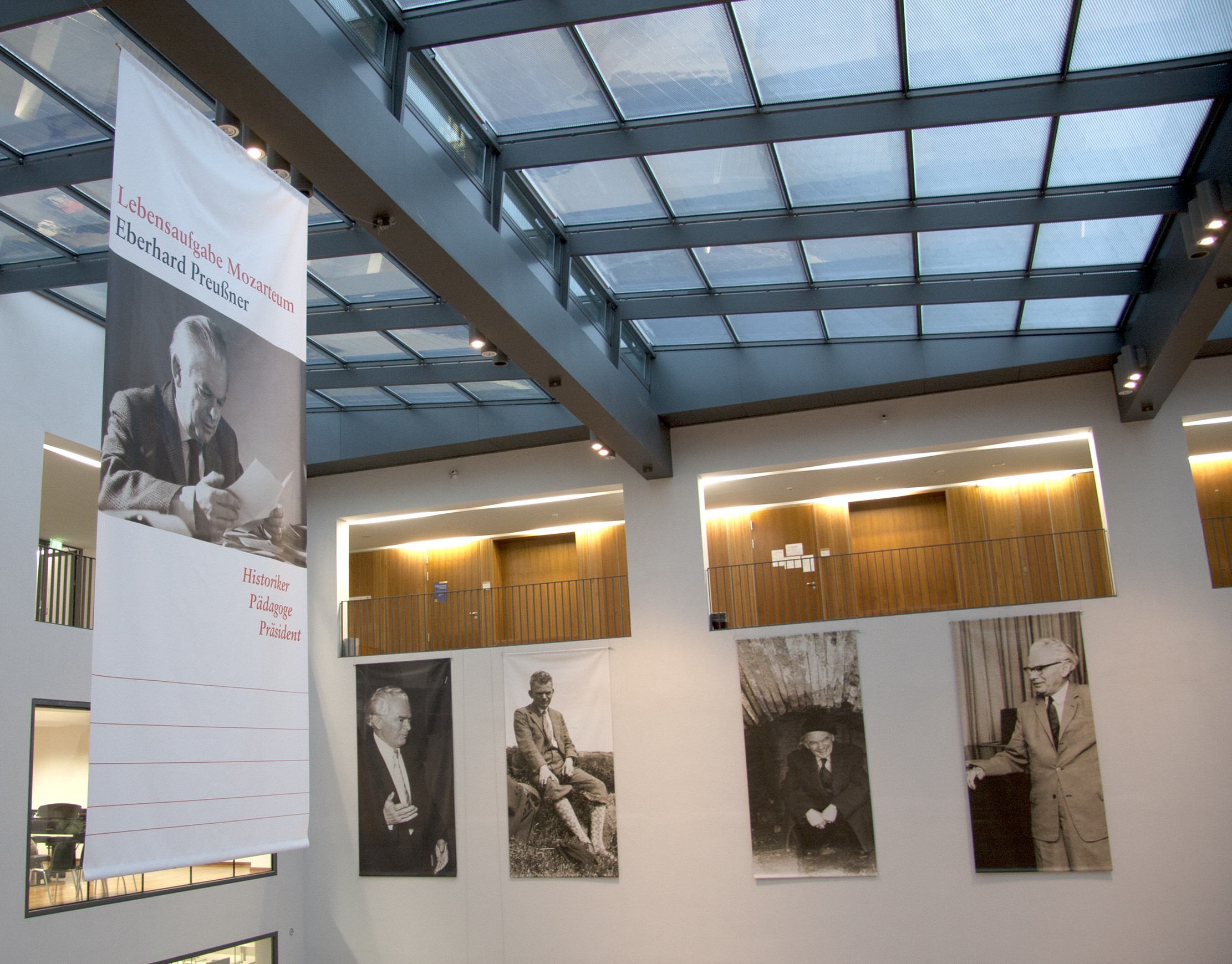 Eine Ausstellung über den Historiker, Musikpädagogen und ehemaligen Präsidenten des Mozarteums Eberhard Preußner im Foyer der Universität Mozarteum Salzburg.