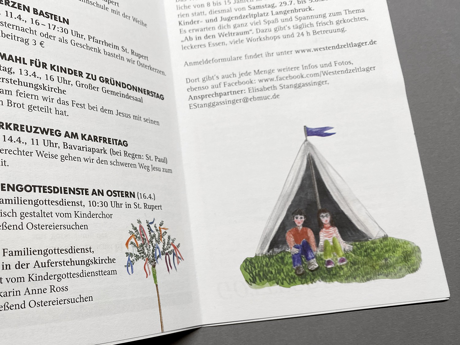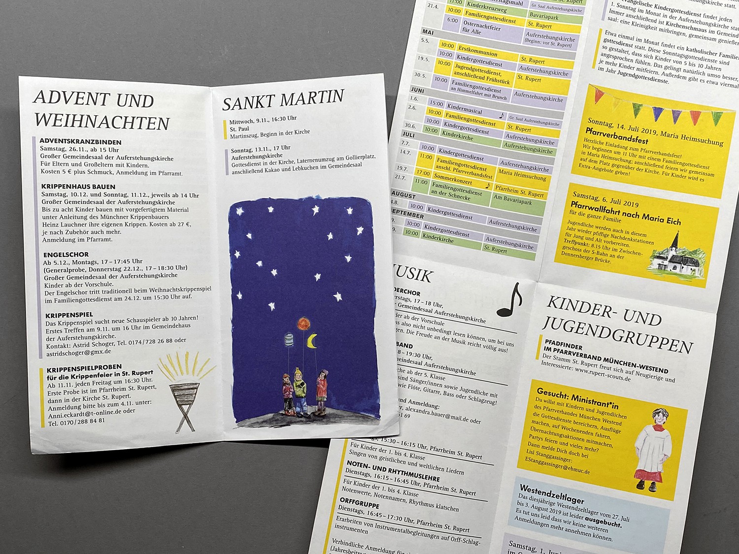 Im Münchener Westend arbeiten die katholische und die evangelische Kirche sehr eng zusammen mit vielen gemeinsamen Aktivitäten. Daher wurde ein gemeinsamer Flyer mit einem jeweils halbjährlichen Veranstaltungsprogramm entwickelt.
