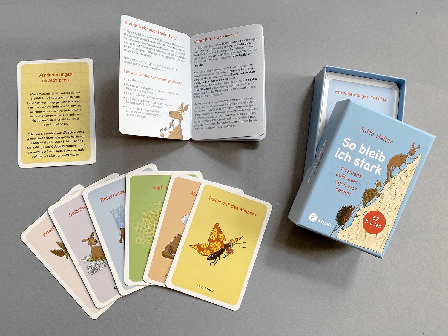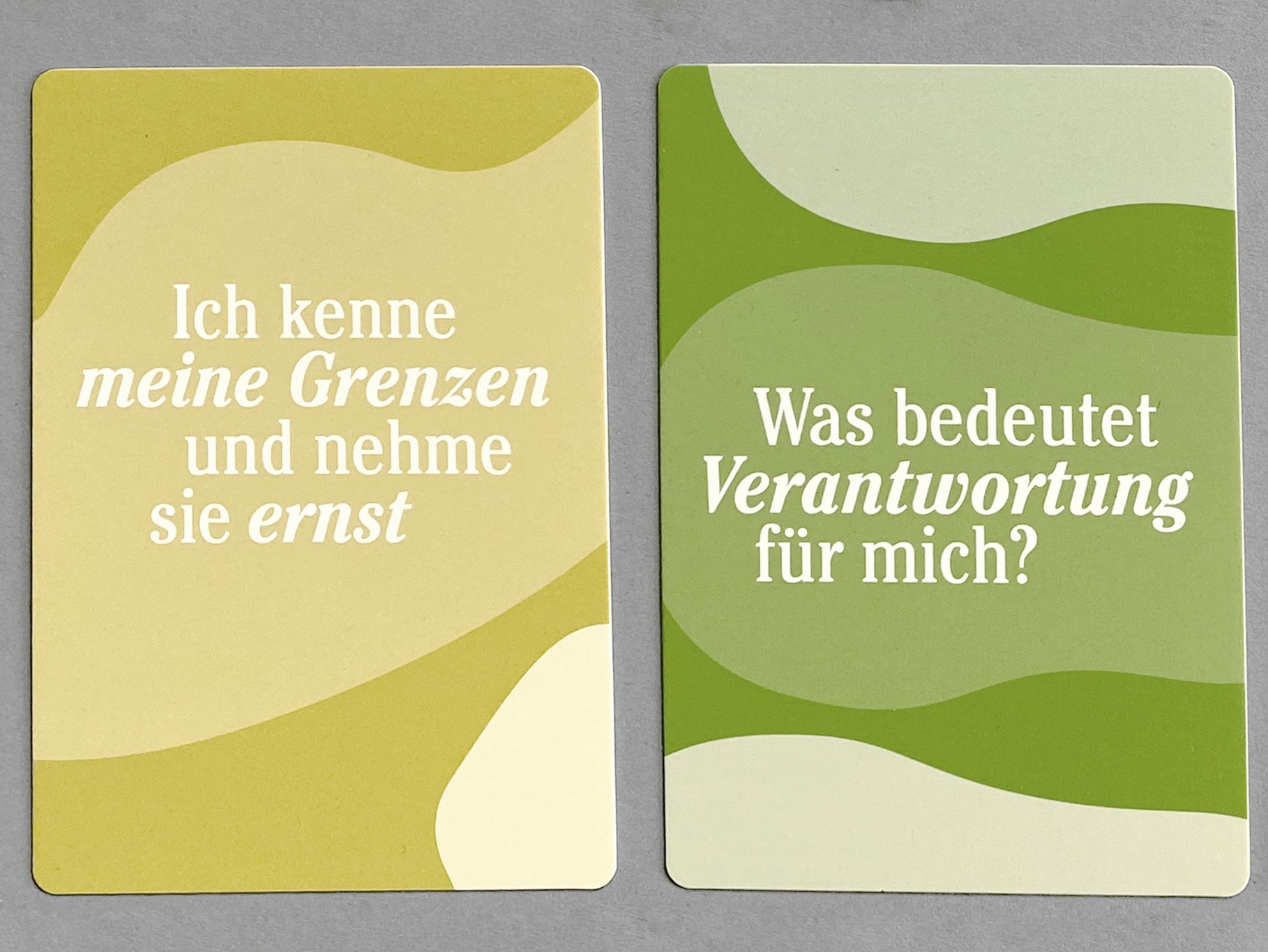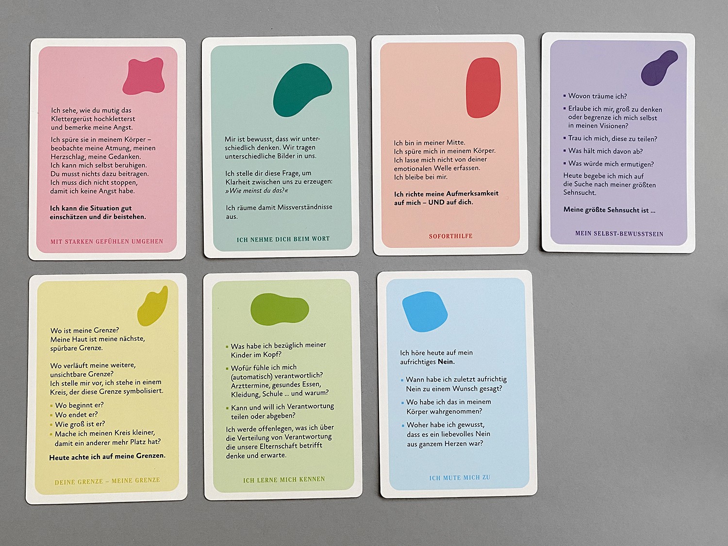 Verschiedene Kartensets, die bereits erschienene Buchpublikationen in ihrer Anwendung unterstützen sollen. Meine Aufgabe war es, Farbwelten zu finden und die typografische Gestaltung zu bestehenden Illustrationen zu übertragen.