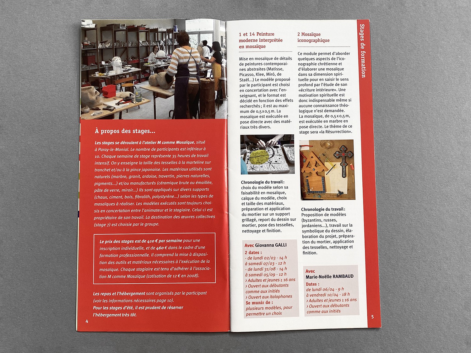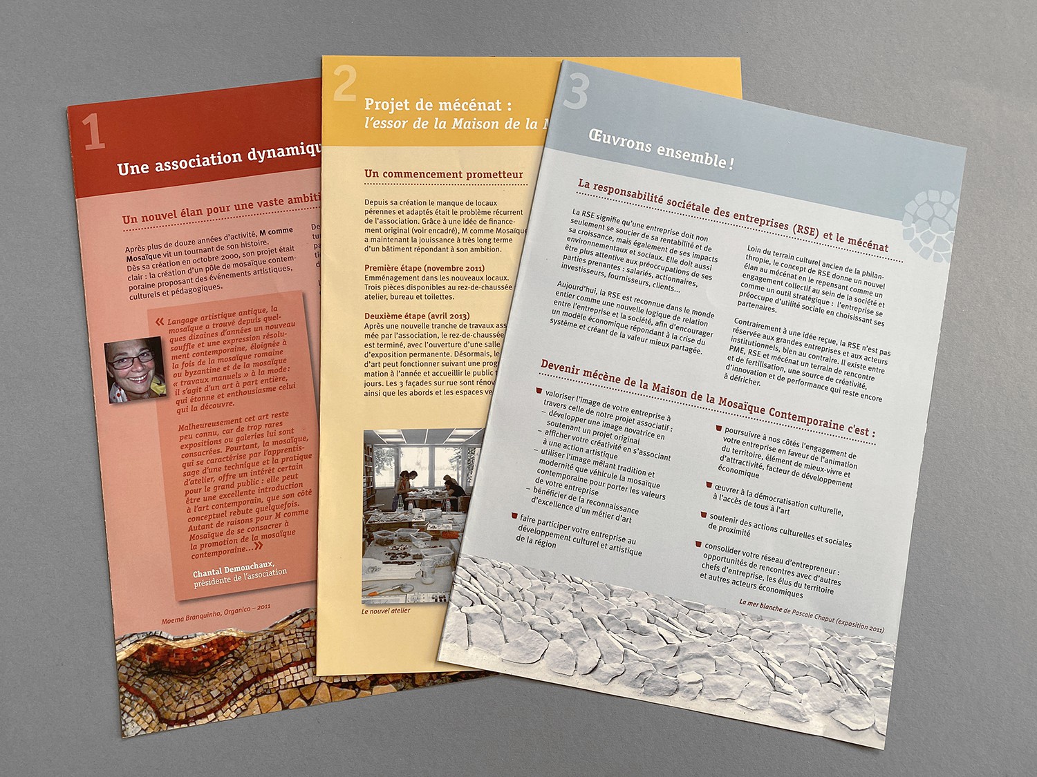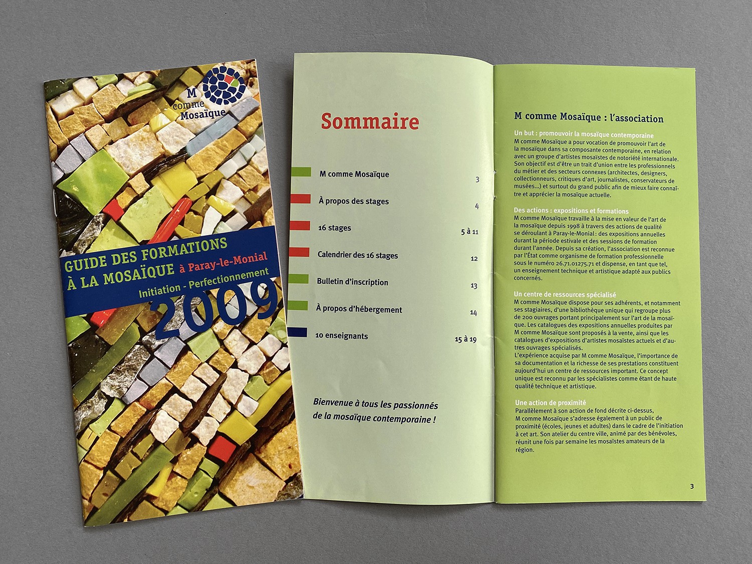 Entwicklung eines Gestaltungskonzepts für eine französische Organisation die Kurse, Konferenzen und Ausstellungen rund um die Kunst des Mosaiks veranstaltet.