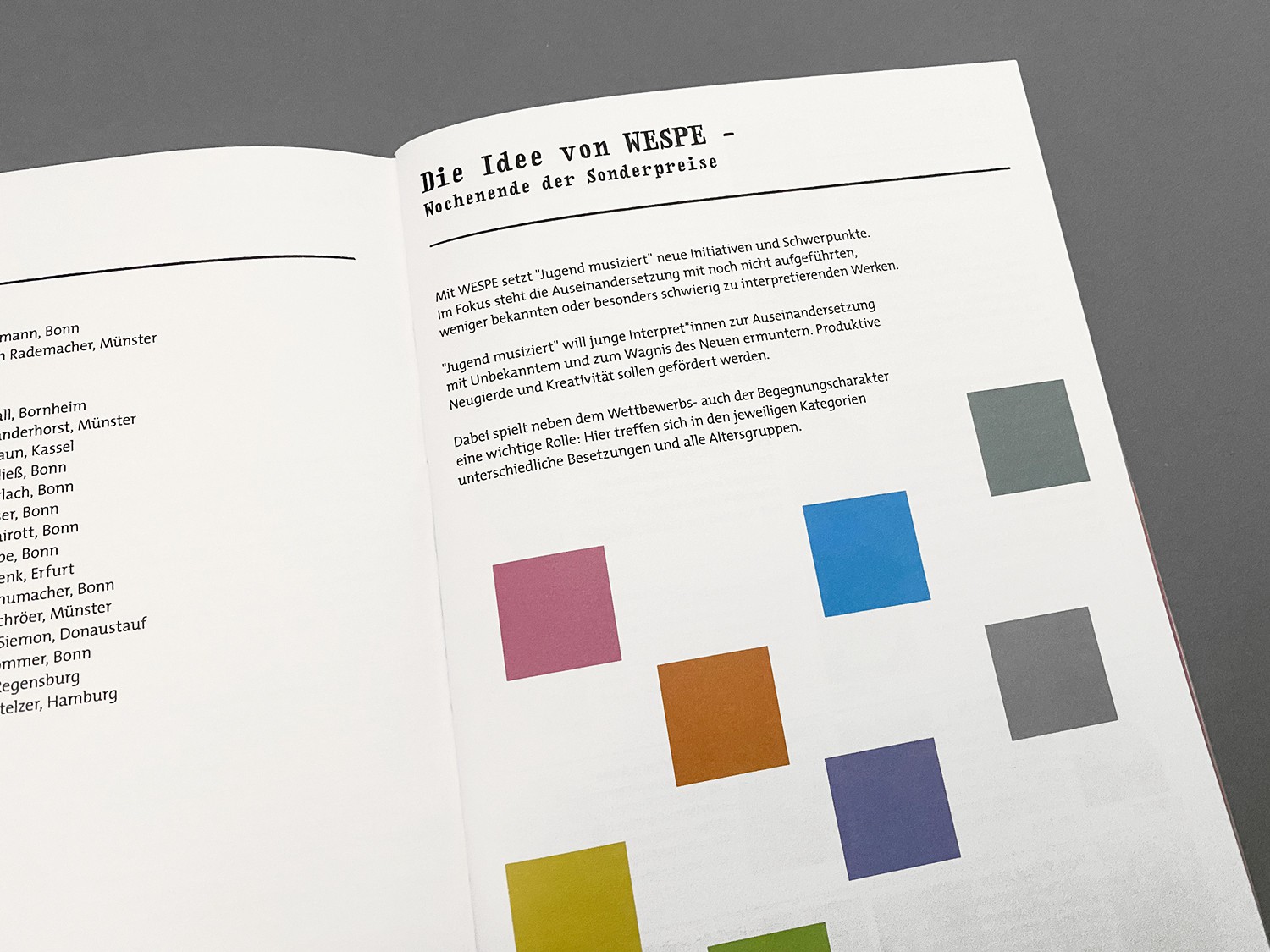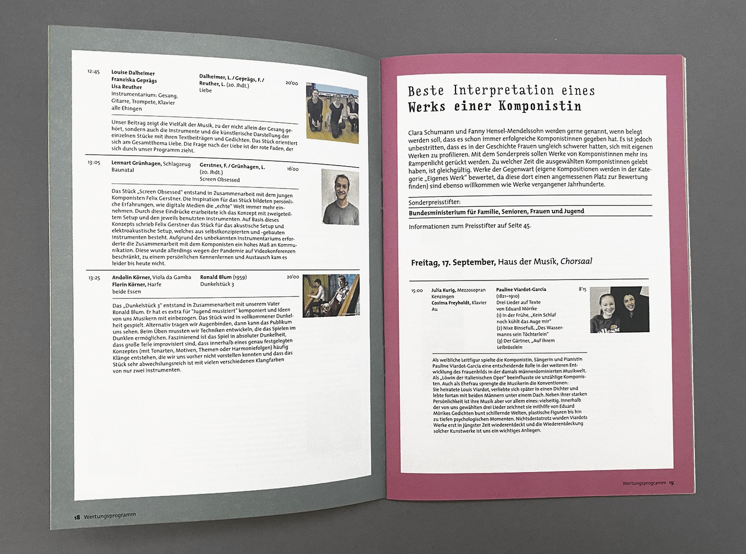 Das Wochenende der Sonderpreise ist ein Anschlussprojekt für Preisträger des Bundeswettbewerbs "Jugend musiziert" bei dem man sich in verschiedenen musikalischen Kategorien neuerer Musik bewerben kann.