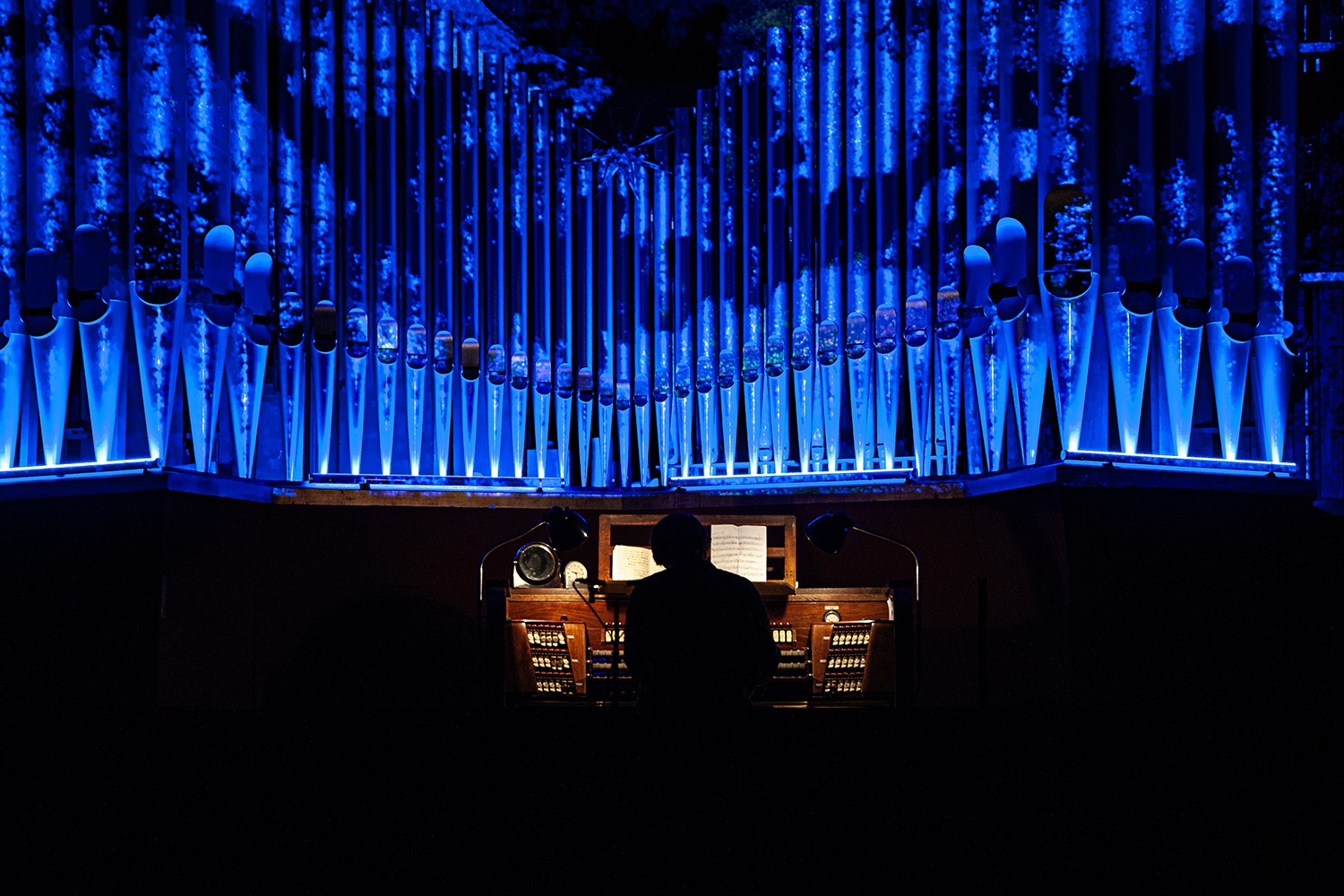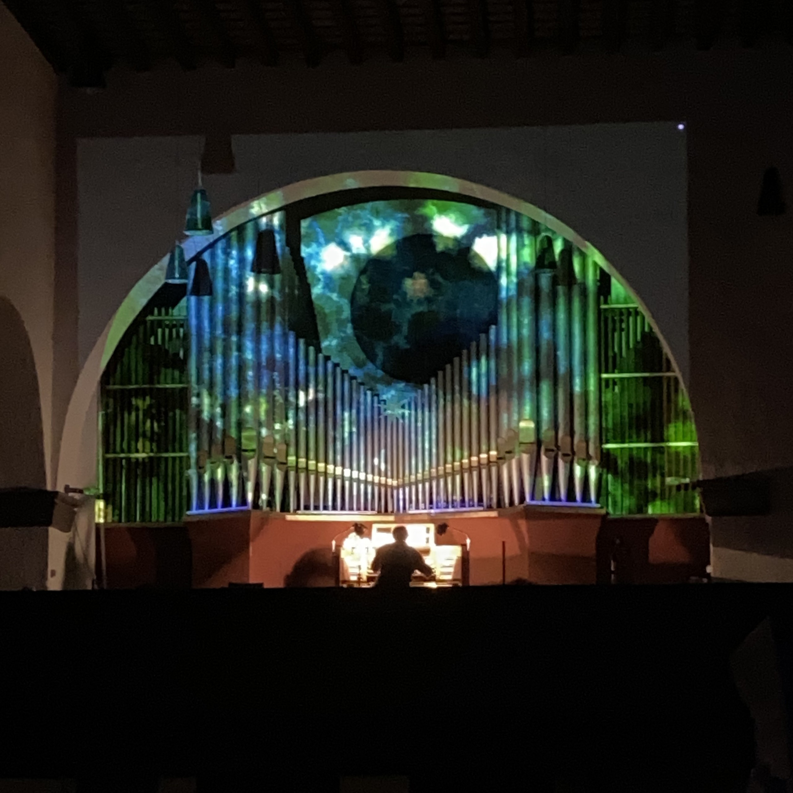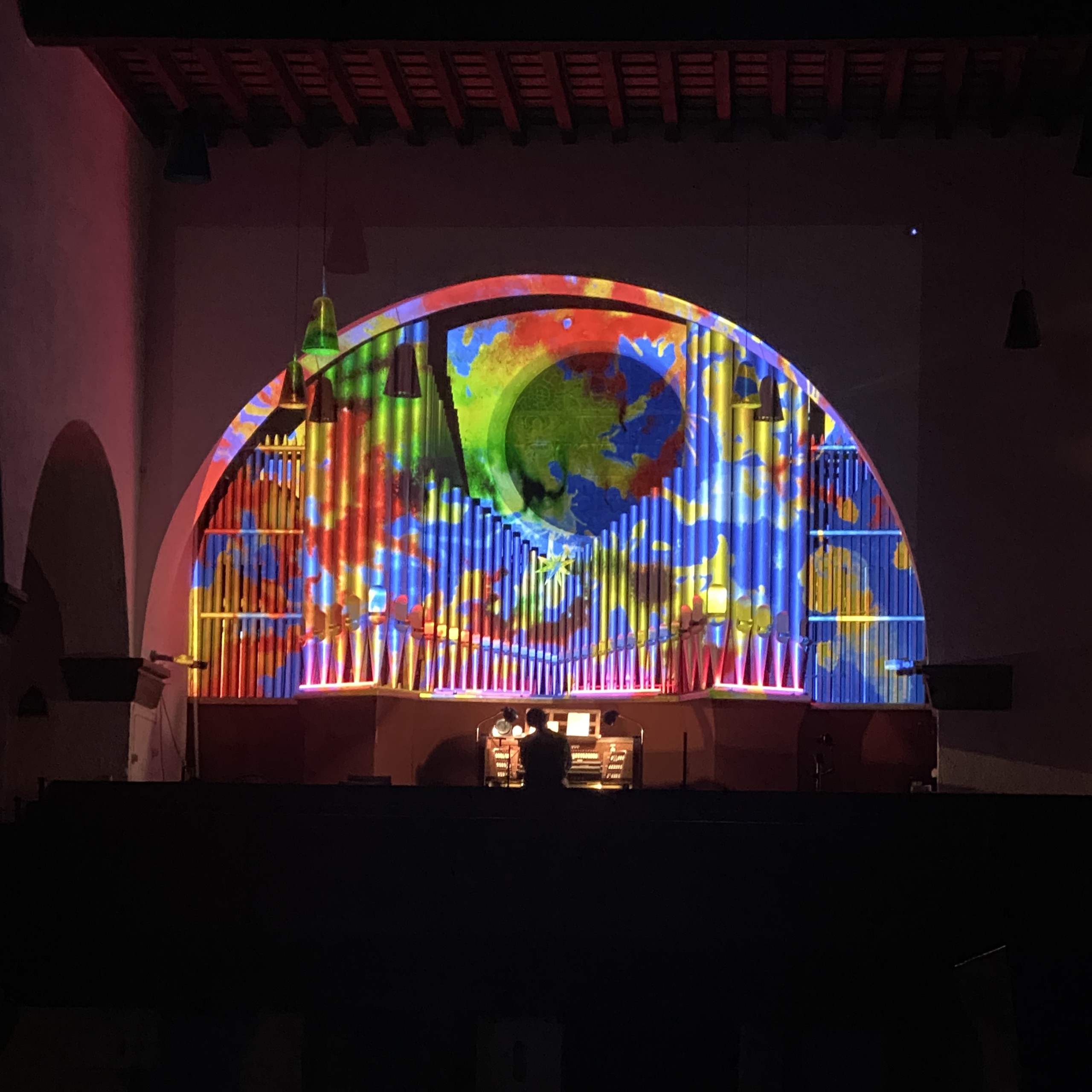 Im Rahmen der Konzertreihe "Westend Vibes", die ich auch grafisch betreue, fand am 14. November 2024 eine Solokonzert mit dem englischen Jazzpianisten Kit Downes an der Orgel statt. Hierfür erstellte ich in verschiedenen Techniken Visuals die während des Konzerts live mit der Musik interagierten.